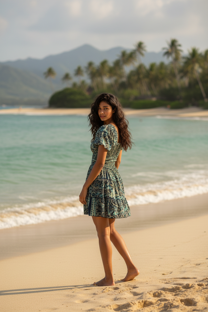 Effortless, feminine, and made for sun-soaked days. This two-piece set features a flattering off-the-shoulder crop top with a soft gathered front and a flowy tiered mini skirt designed to move beautifully with you. Crafted in a lightweight, breathable fabric with a delicate bohemian-inspired print, it’s perfect for beach walks, vacations, or warm-weather outings.